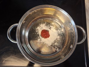 - Make the sauce: In a saucepan, heat flour briefly, then whisk in tomato paste and broth. Add seasonings and simmer until smooth.