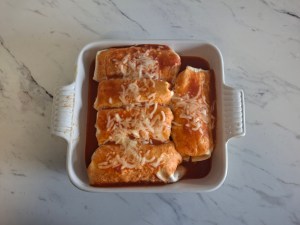 - Assemble: Fill each tortilla with chicken mixture and cheese. Roll them up and place seam-side down in a baking dish.